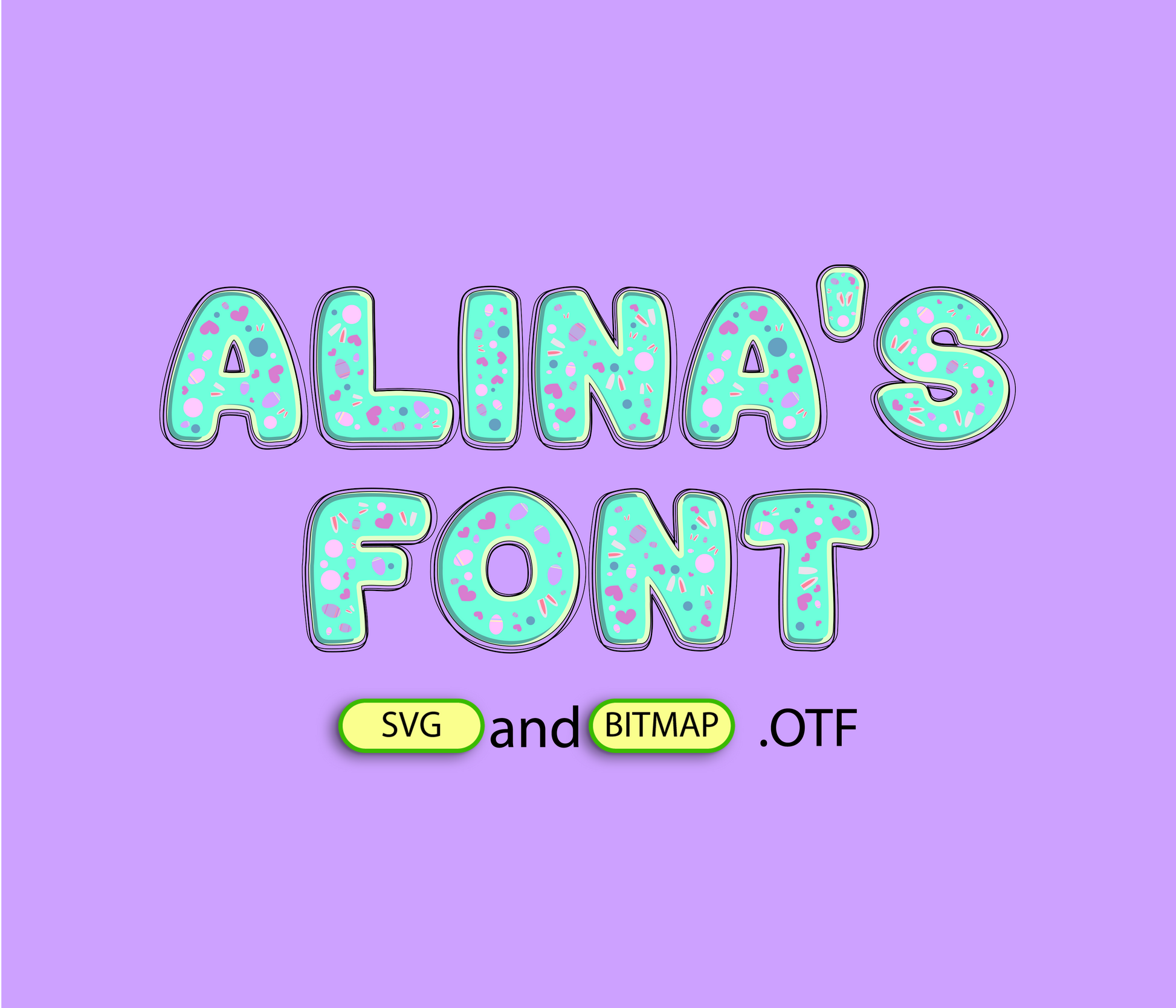 - Alina's FONT NO TEXTURE | - 1 *OTF (Open Type Font) original FONT (you can change size, color etc.) + 94 PNG + AI (adobe illustrator) + SVG