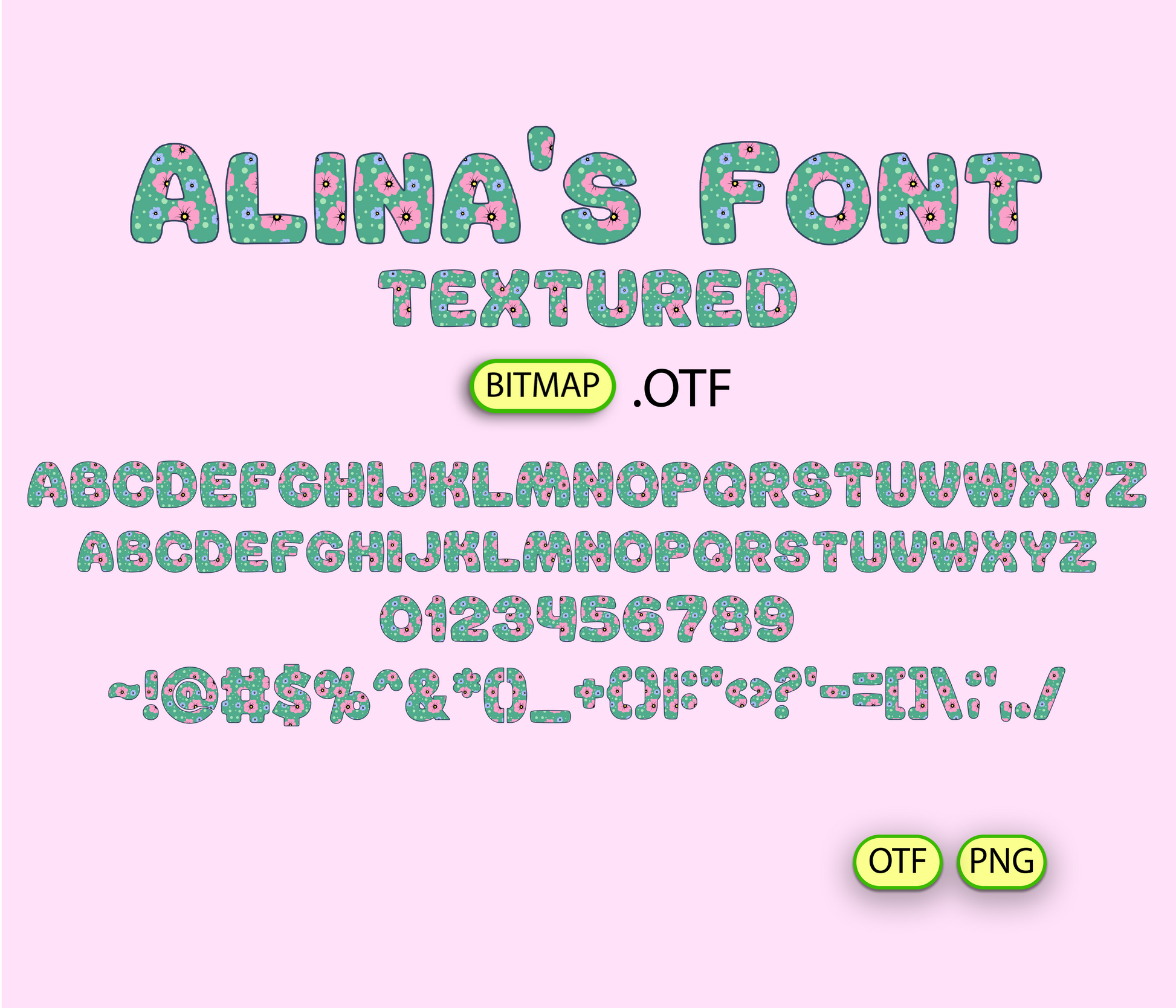 - Alina's FONT TEXTURED flower pattern BITMAP | - 1 *OTF (Open Type Font) original FONT (you can change only the size) + 94 PNG *******DISCLAIMER!