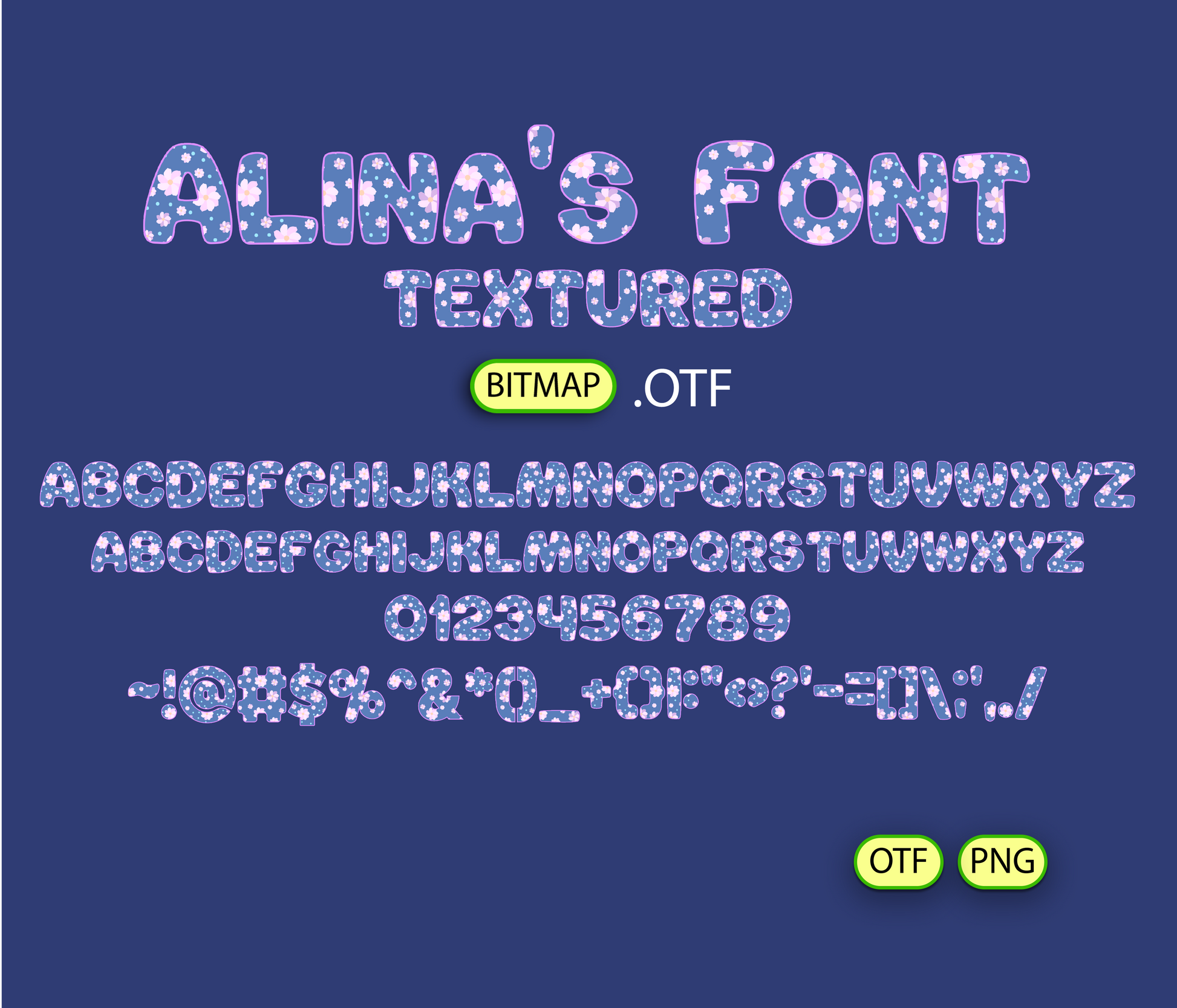 - Alina's FONT TEXTURED flower pattern BITMAP | - 1 *OTF (Open Type Font) original FONT (you can change only the size) + 94 PNG *******DISCLAIMER!