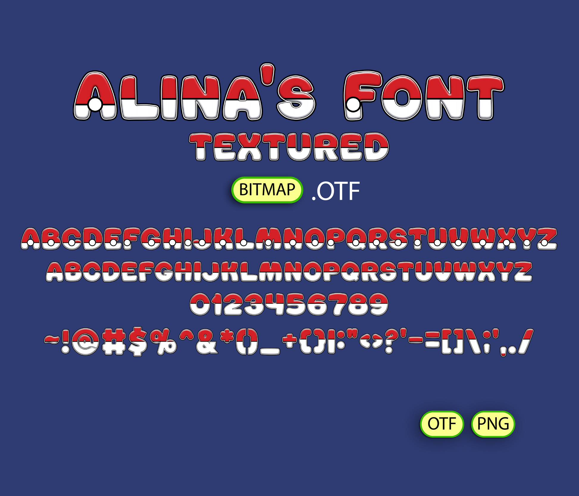 - Alina's FONT TEXTURED BITMAP | - 1 *OTF (Open Type Font) original FONT (you can change only the size) + 94 PNG *******DISCLAIMER!