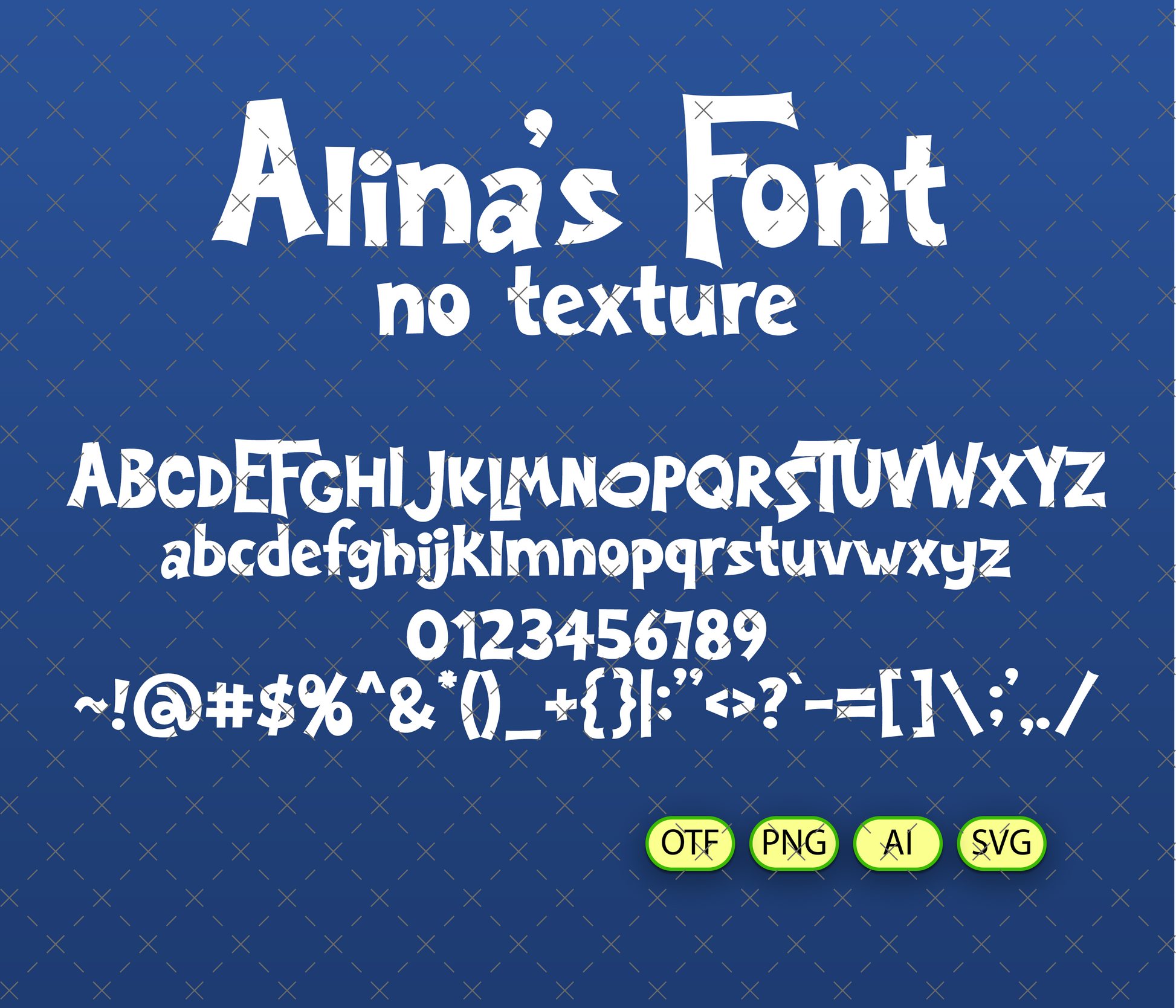 - Alina's FONT FREE NO TEXTURE | - 1 *OTF (Open Type Font) original FONT (you can change size, color etc.) + 94 PNG + AI (Adobe Illustrator) + SVG