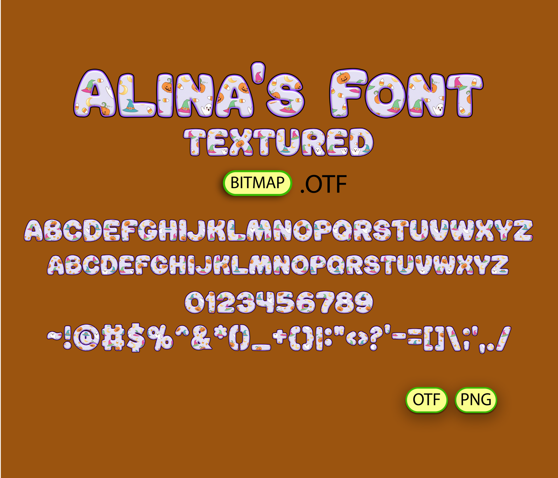 - Alina's FONT TEXTURED BITMAP | - 1 *OTF (Open Type Font) original FONT (you can change only the size) + 94 PNG *******DISCLAIMER!