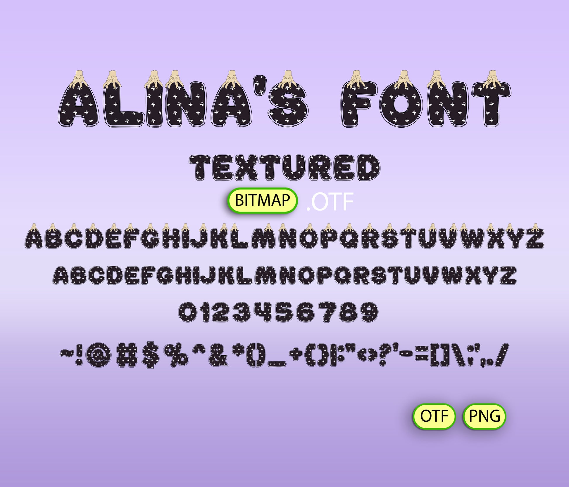 - Alina's FONT TEXTURED BITMAP | - 1 *OTF (Open Type Font) original FONT (you can change only the size) + 94 PNG *******DISCLAIMER!