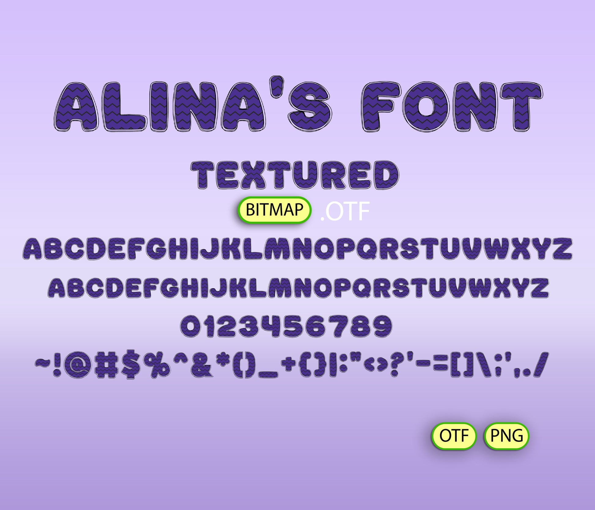 - Alina's FONT TEXTURED BITMAP | - 1 *OTF (Open Type Font) original FONT (you can change only the size) + 94 PNG *******DISCLAIMER!