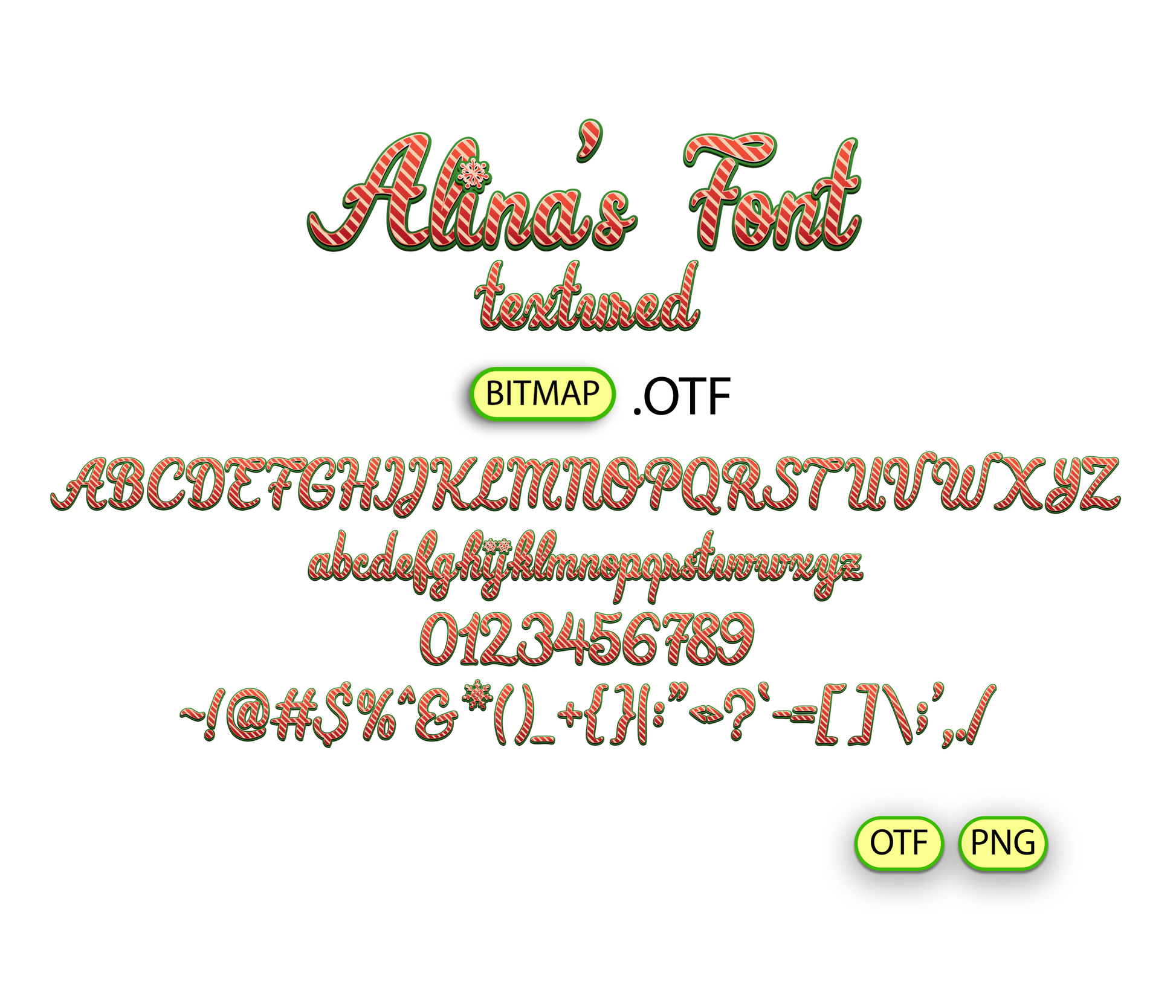- Alina's FONT TEXTURED BITMAP | - 1 *OTF (Open Type Font) original FONT (you can change only the size) + 94 PNG *******DISCLAIMER!