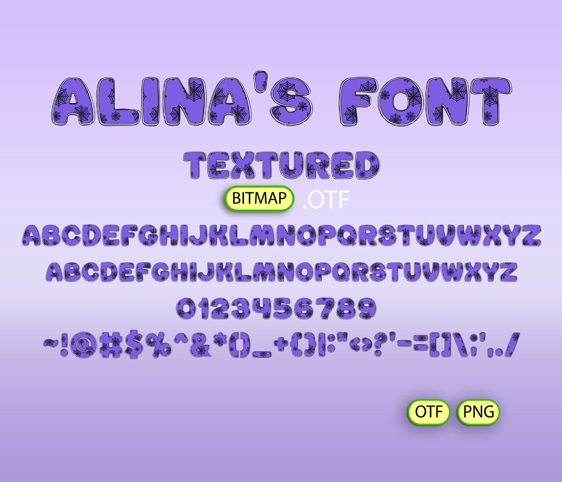 - Alina's FONT TEXTURED BITMAP | - 1 *OTF (Open Type Font) original FONT (you can change only the size) + 94 PNG *******DISCLAIMER!