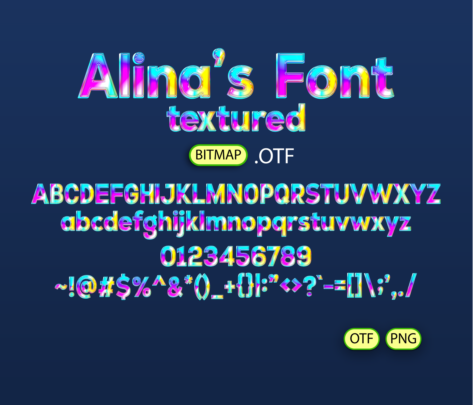 - Alina's FONT TEXTURED BITMAP | - 1 *OTF (Open Type Font) original FONT (you can change only the size) + 94 PNG *******DISCLAIMER!