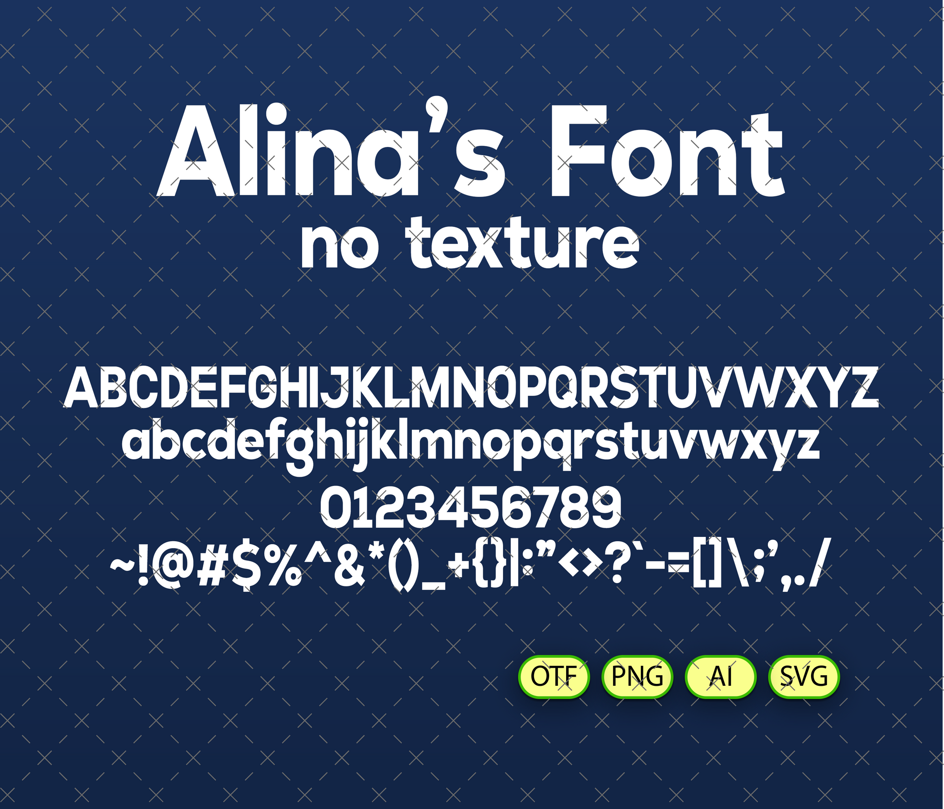 - Alina's FONT FREE NO TEXTURE | - 1 *OTF (Open Type Font) original FONT (you can change size, color etc.) + 94 PNG + AI (Adobe Illustrator) + SVG